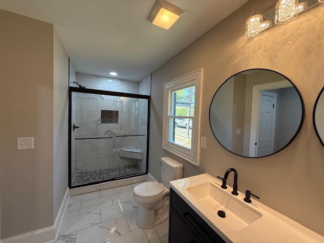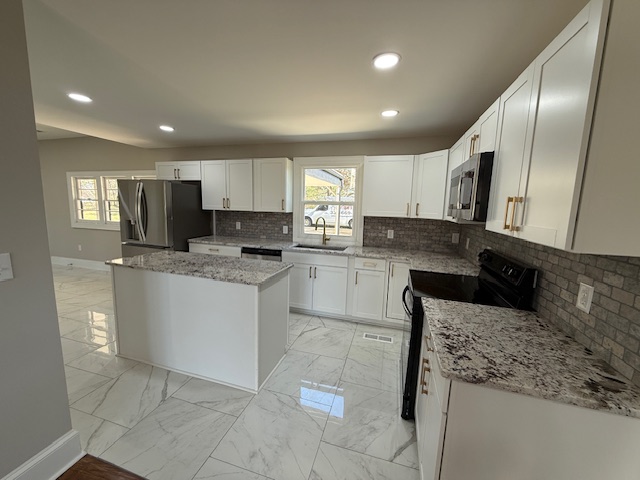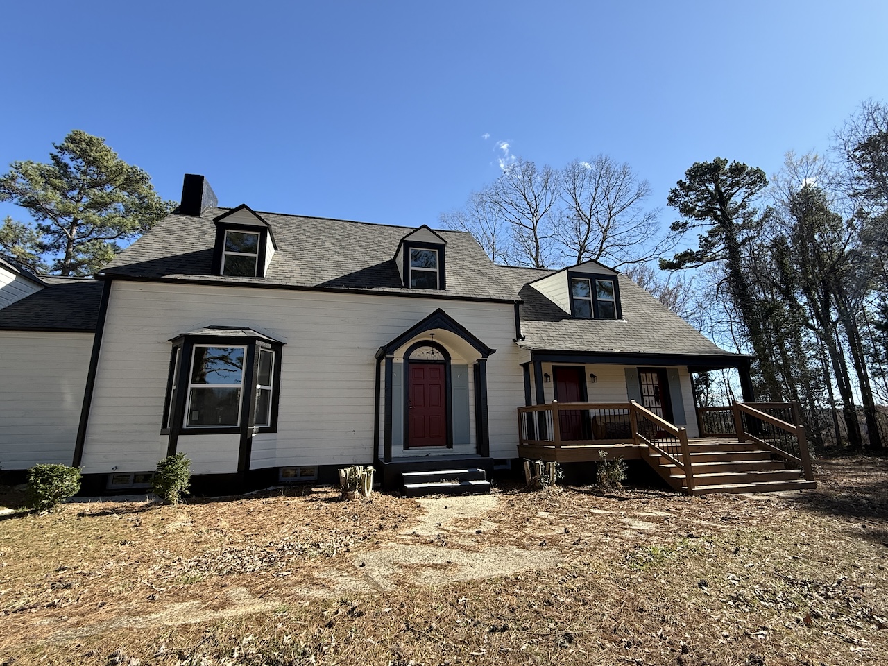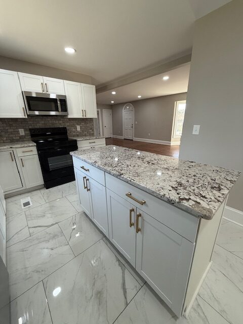 Marathon Property Solutions Presents: 1682 Cunningham Brick Yard Rd., Thomasville, NC 27360: Stunning renovation from top to bottom! Huge 2 acre lot! 4 bedrooms, 2 ½ baths. Hardwoods and all new tile flooring (no carpet). Brand new HVAC system, new water heater, new windows, new roof. Large living room with built-ins and fireplace. Kitchen with backsplash, all new appliances, island, and pantry. Separate laundry room with shelving. Powder room on main level. Basement storage! Primary bedroom on main level with access to private covered porch, primary bath has tile shower. Three additional bedrooms on second floor plus full bath. Large attached carport and detached storage building. All electric utilities, no gas. Well/septic. Available now!