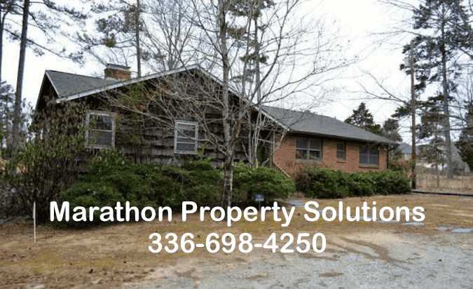 Marathon Property Solutions Presents: 1721 Guilford College Road, Jamestown, NC 27282: Country living in the city! One story home with unfinished basement. Features 3 bedrooms, 2 baths, large eat in kitchen, huge den with fireplace and sunroom. Hardwoods in all main rooms and bedrooms. Well/septic. Property is very secluded and sits on over 4 acres. Convenient location to shopping and airport! Pets allowed up to 25 lbs. Available now.