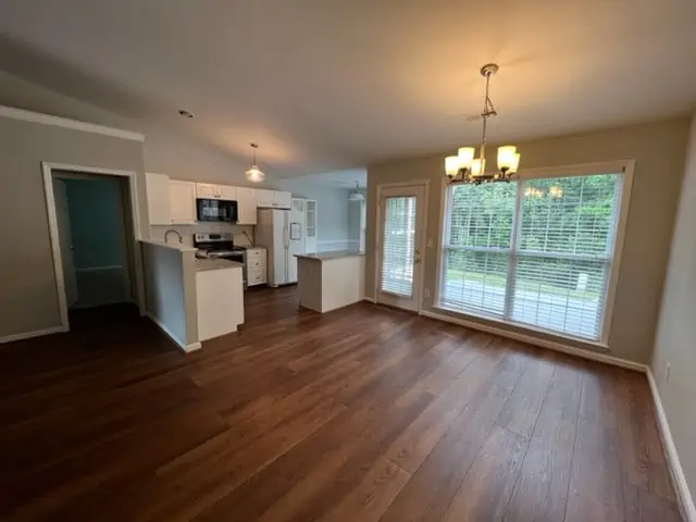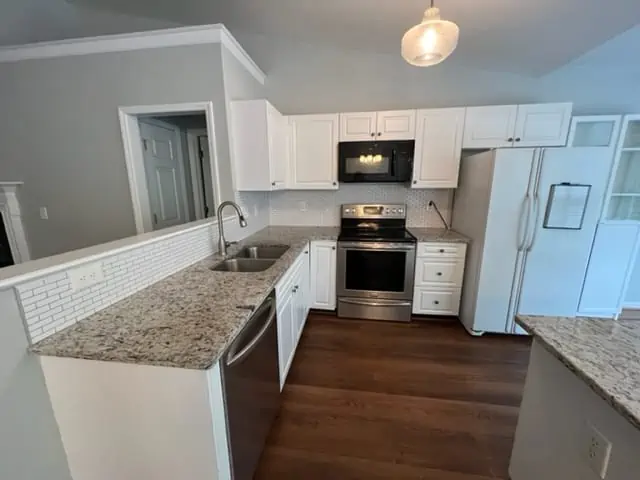Marathon Property Solutions Presents: 38 Mansfield Circle, Greensboro, NC 27455: Beautiful one level town home in Whitehall community. Features 3 bedrooms, 2 full baths. One-car attached garage. Spacious open floor plan with built-in shelving, vaulted ceilings, fireplace. Laundry room, entry foyer, full bath. Wood plank flooring in living areas, carpet in bedrooms. Primary bedroom has full bath with tile shower & walk-in closet. Eat-in kitchen is updated with granite countertops, tile backsplash, & updated appliances. Private back patio overlooking wooded area. No cats allowed but dogs allowed up to 25 lbs. Lawn care is included. Available now!
